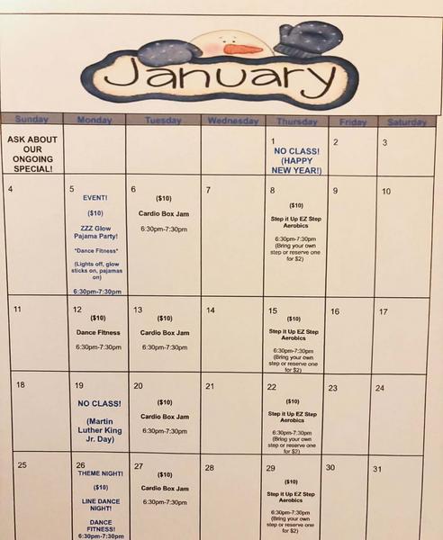 *When you come to class, you will receive a calendar that has all fitness